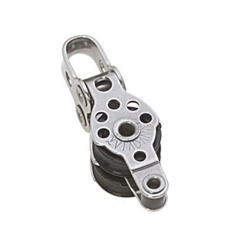 Bozzello Viadana doppio con arricavo, di peso e dimensioni ridotte, usati principalmente su derive. La puleggia è in delrin, le parti metalliche in acciaio inox aisi 316.