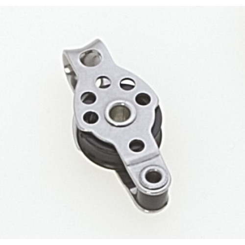 Bozzello Viadana singolo con arricavo di peso e dimensioni ridotte, usati principalmente su derive. La puleggia è in delrin, le parti metalliche in acciaio inox aisi 316.
